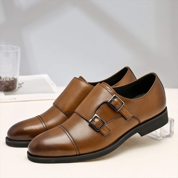 ビジネスシューズ メンズ 本革 紳士靴 革靴 モンクストラップ ストレートチップ 結婚式 ブラウン ビジネス靴 紳士用