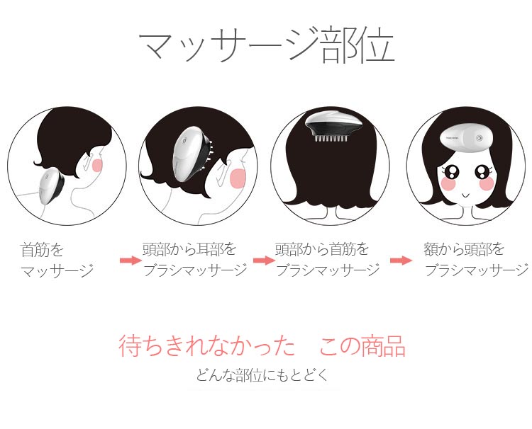 【カラー】ホワイト 【電源モード】電池 【振動回数】毎分約8000回 頭皮マッサージでこりをほぐして血行促進やヘアケアに。 頭皮だけでなく首や肩やその他全身ケアにも使える多機能マッサージャーです。 ローリング回転で手もみ風マッサージを体験。 丁度良いもみ具合で先端の丸い先端で肌にやさしく程よい圧力でマッサージします。