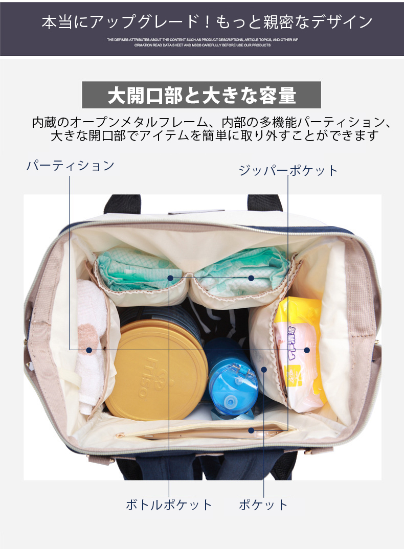 開口式大容量多機能のマザーズバッグになります♪
