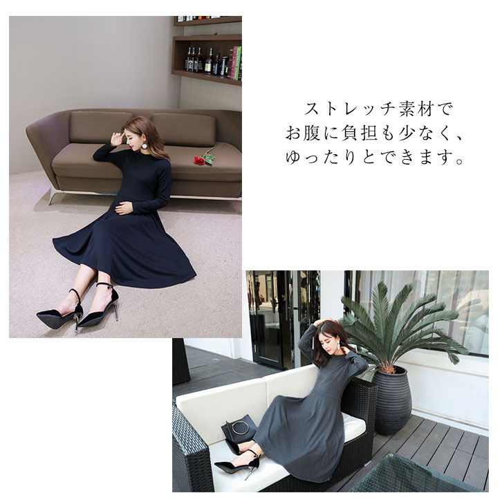 【カラー】ブラック・グレー 【サイズ】Sサイズ 腹囲 95-110 着丈105 肩幅38 バスト83-94 袖丈56 シンプルなデザインでストレッチ素材で お腹の負担軽減♪ ゆったりとしています♪ お出かけの普段着や パーティードレスとしてもOK♪