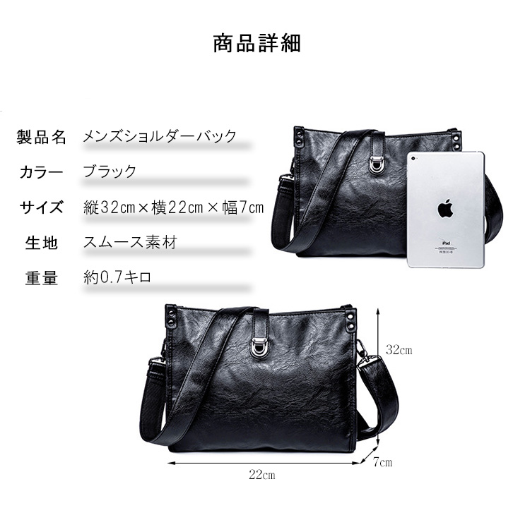 バッグ ショルダーバッグ メンズショルダーバッグ 肩掛け PUレザー 斜め掛け ショルダー 合成皮革 フェイクレザー かばん ビジネス 通勤 通学 シンプル かっこいい おしゃれ メンズ 程よいサイズ 大容量収納