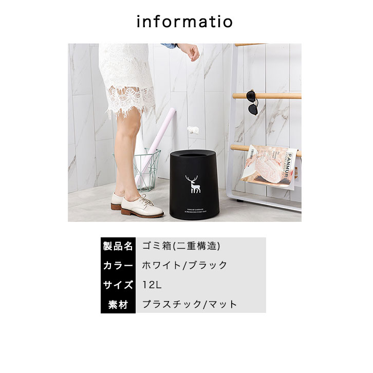 【カラー】ホワイト/ブラック/グレー 【サイズ】12L ゴミ袋を隠して生活感を抑えるという画期的なスタイルのゴミ箱♪ ゴミ箱がインテリアにチェンジ♪