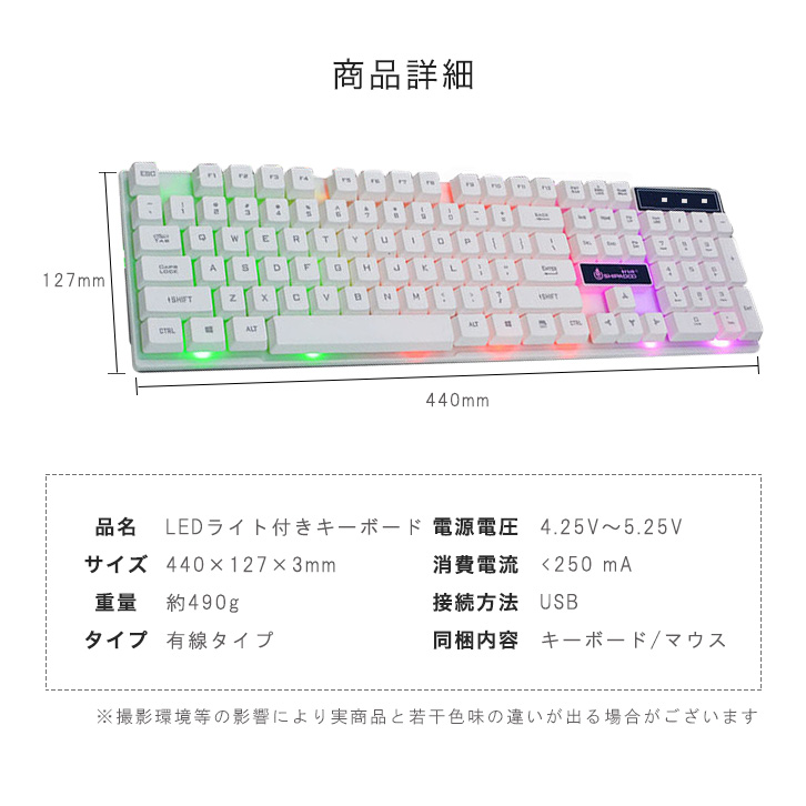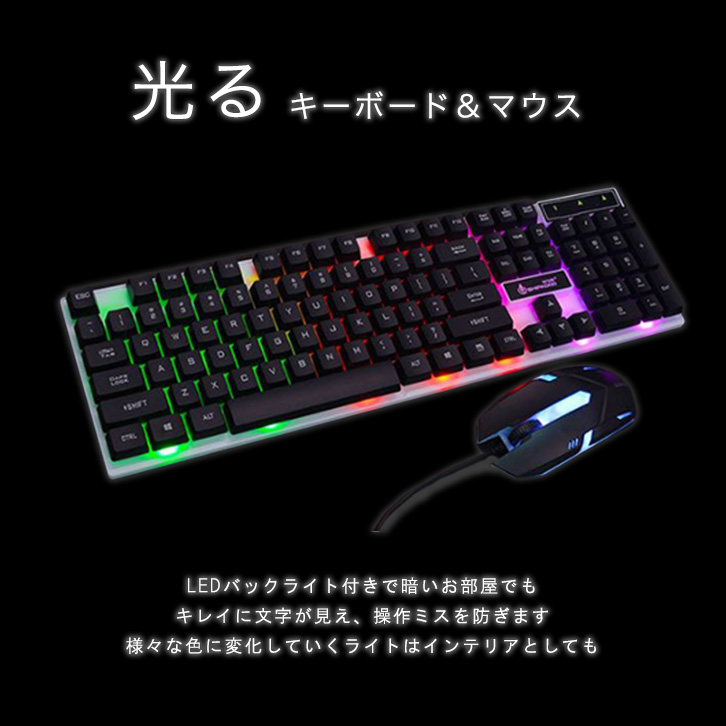 キーボード&マウスセット 2点セット ゲーミングキーボード LEDライト バックライト 立体浮式フレーム 有線タイプ 光る マウス キーボード