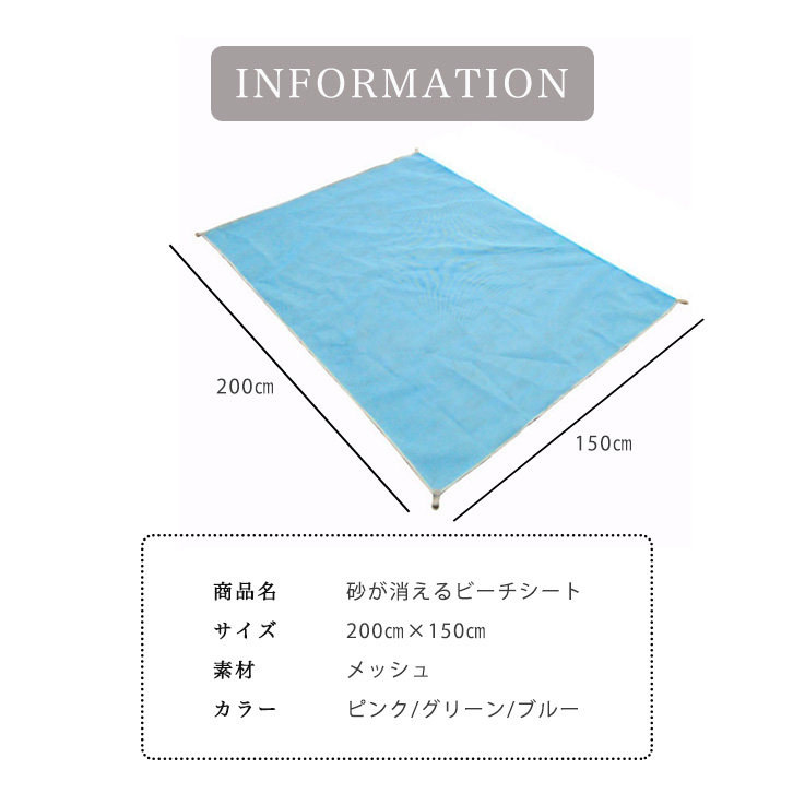 ビーチシート レジャーシート シート 二重メッシュ構造 2層 ストレスフリー 砂が消える アウトドア 運動会 キャンプ ピクニック 全3色 ピンク ブルー グリーン メッシュ素材
