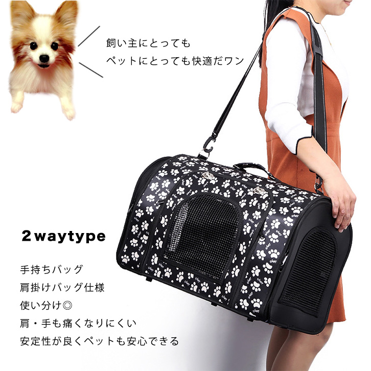 ペットキャリー 折りたたみペットキャリー Mサイズ お出かけ 散歩 病院 旅行 メッシュ素材 通気性抜群 ベルト付き キャリーケース 飛び出し防止リード付き 快適 安全 ふわふわマット 洗えるマット付き 2wayタイプ 手持ち 肩掛け