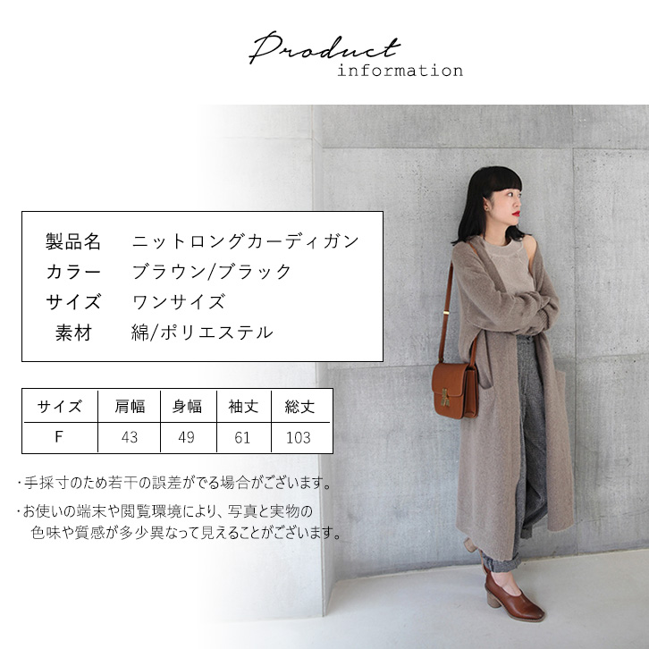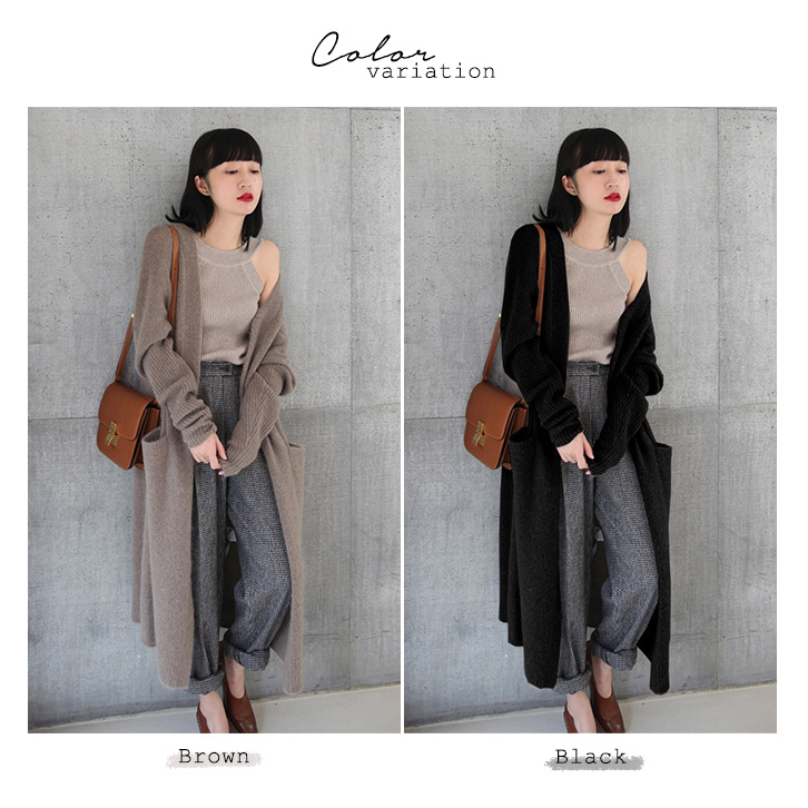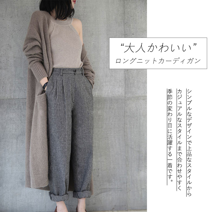 カーディガン レディース ロング丈 ニットカーディガン ロングカーディガン ロングニットカーディガン 大人かわいい カジュアル シンプル 上品 着回し抜群 ボタンレス 羽織り ラフ きれいめ ポケット付き 伸縮性 おしゃれ かわいい ブラウン ブラック