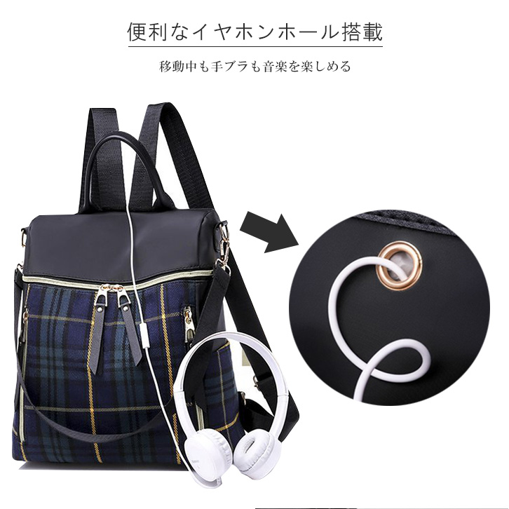 バックパック リュック レディース ボーダーチェック おしゃれ 大人かわいい キュート 大容量収納 デイリー 通勤 通学 旅行 収納ポケット多数 収納力抜群 イヤホンホール付き ショルダーバッグ 2way ストラップ取り外し可能