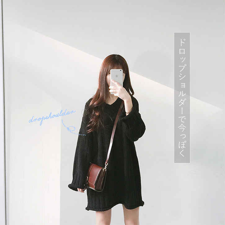 ニットワンピース ワンピース ミニ丈 膝上丈 ニット Vネック Vネックニットワンピース ニットワンピ かわいい 秋冬 定番 ゆるっとシルエット 抜け感 大人かわいい かわいい ドロップショルダー シンプル 無地 おしゃれ