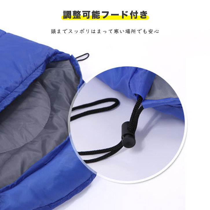 封筒型トンネルフード付き寝袋になります。