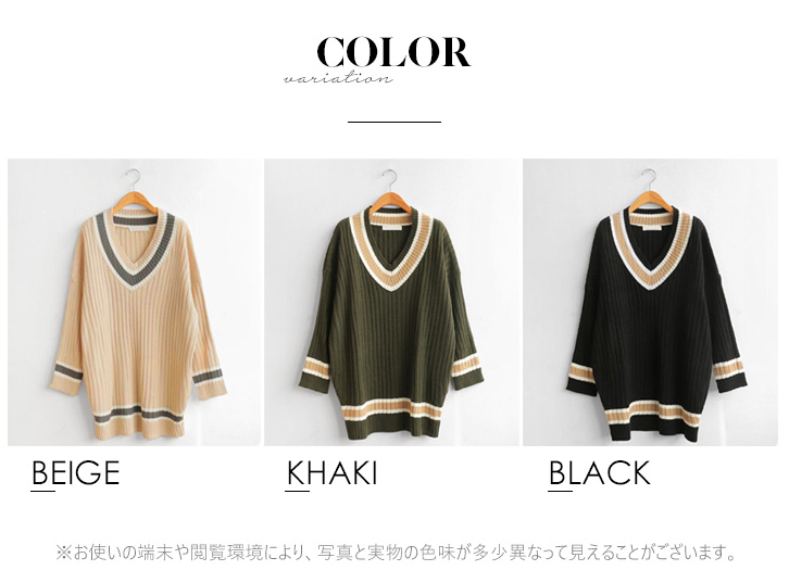 ニット セーター レディース 長袖 Vネック おしゃれ ゆるっと感 オーバーサイズ 大人かわいい カジュアル 体型カバー バイカラーライン おしゃれ 着回し抜群 秋 冬 シンプル 合わせやすい ベージュ カーキ ブラック ワンサイズ