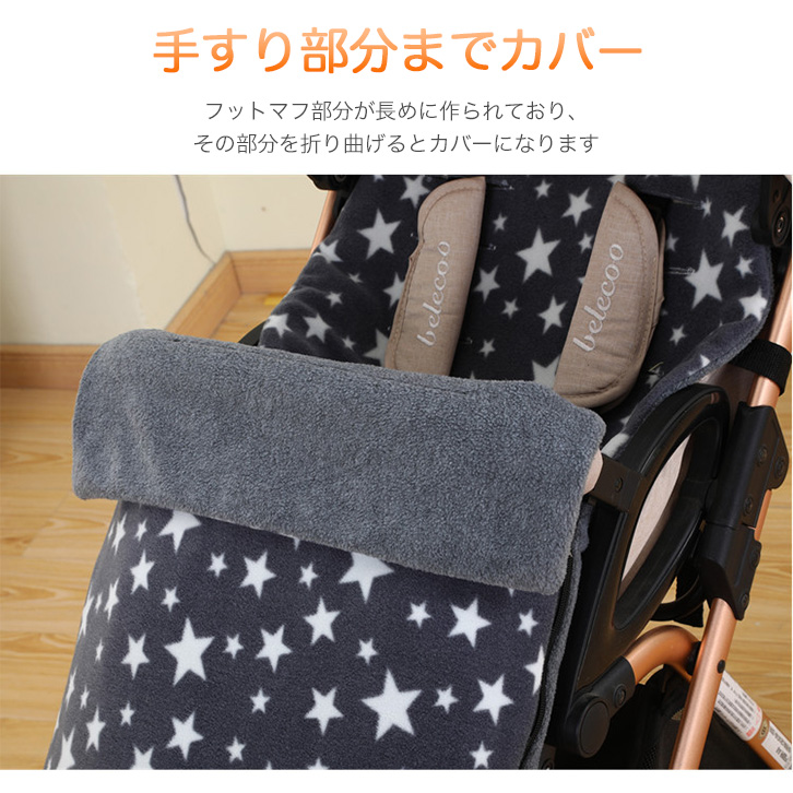 ベビーカーフットマフ ベビー用品 フットマフ ベビーカー 防寒 防寒カバー 星柄 もこもこ 保温 あったか 暖かい 防寒対策 肌触り抜群 取り外し可能 ブルー グレー ブラック シンプル かわいい おしゃれ お出かけ お散歩