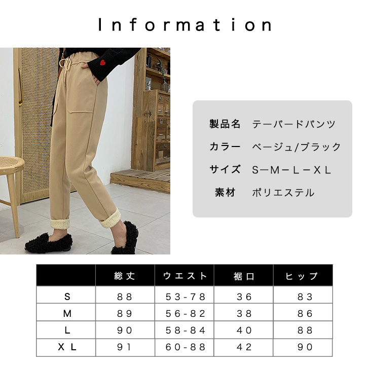 パンツ ボトムス レディースボトム 長ズボン テーパードパンツ テーパード シンプル 着回し抜群 秋冬 秋 冬 着心地抜群 ボア裾 ウエストゴム らくちん スウェット生地 合わせやすい 全2カラー ベージュ ブラック