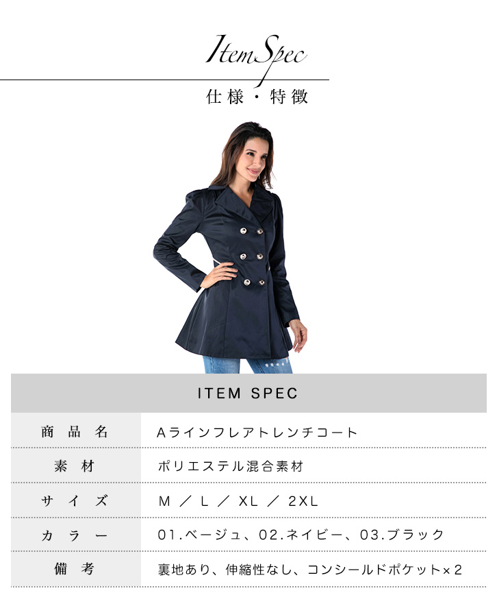 トレンチコート レディース コート アウター 羽織り Aライン フレア フレアトレンチコート 体型カバー ロングシーズン 春 秋 シンプル 合わせやすい ベージュ ネイビー ブラック 定番 光沢感 きれいめ 大人カジュアル 着回し抜群 優秀