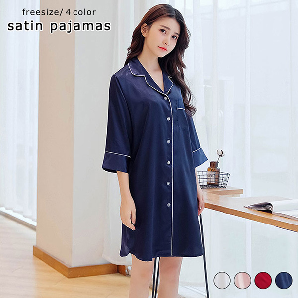 ルームウェア レディース パジャマ ルームウェア 前開き シャツワンピ ワンピ ナイトウェア 大人女子 贈り物 プレゼント サテン 可愛い おしゃれ