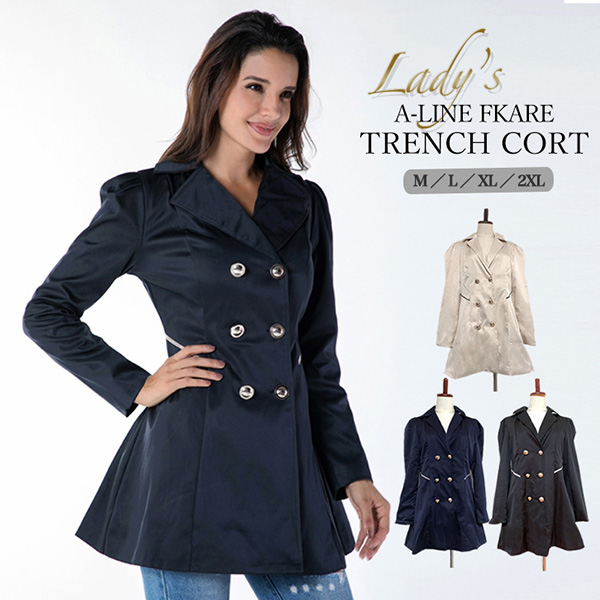 トレンチコート レディース コート アウター 羽織り Aライン フレア フレアトレンチコート 体型カバー ロングシーズン 春 秋 シンプル 合わせやすい ベージュ ネイビー ブラック 定番 光沢感 きれいめ 大人カジュアル 着回し抜群 優秀