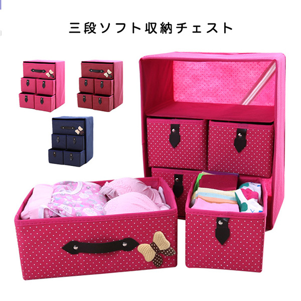 収納ボックス 収納チェスト 三段 ソフト収納チェスト ソフト 折りたたみ可能 折りたたみ収納チェスト 収納 ソフト素材 子供部屋 引き出し組み合わせ自由自在 整理整頓 衣類 タオル 5引き出し ピンク レッド ネイビー