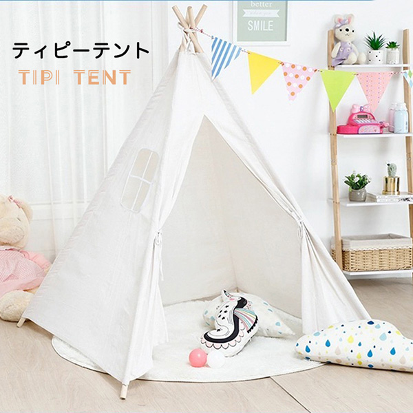 ティピーテント キッズテントハウス テントハウス テント 民族 北欧風 子供 子供部屋 秘密基地 ペット コットンリネン ナチュラル かわいい 小窓付き インテリア 窓付き 室内テント シンプル 隠れ家 プレゼント ギフト