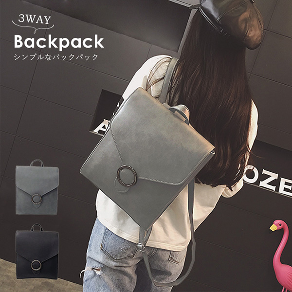 リュック バックパック レディースリュック レディース シンプル 無地 スクエア型 リングバックル カジュアル おしゃれ 収納力抜群 スマート 大容量収納 デイリー 通勤 通学 背面ポケット付き 合わせやすい かわいい