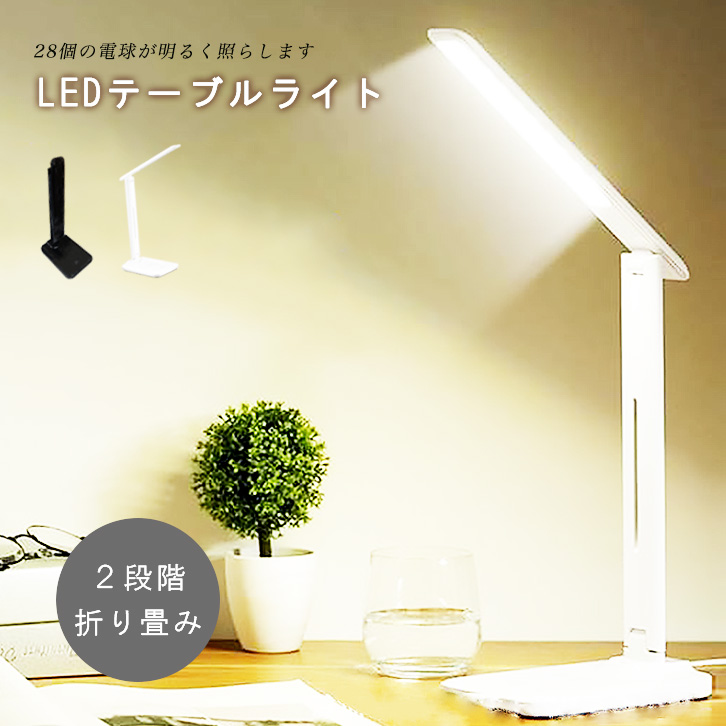 テーブルライト LEDライト 卓上ライト 折り畳み式 角度調節可能 明るさ自由調節 USBケーブル充電 28個LEDランプ ホワイト ブラック