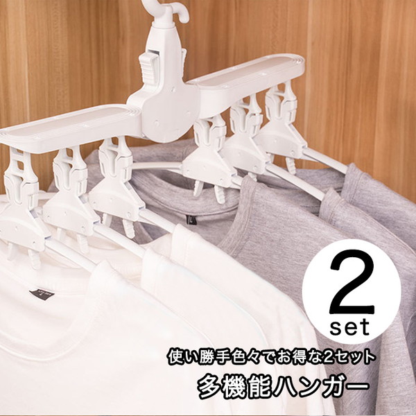 ハンガー 多機能ハンガー 折りたたみ 2セット ワンタッチ取り外し 折りたたみハンガー 折りたたみ式 ワンタッチ ラクチン 型崩れ防止 外干し 部屋干し 洗濯ハンガー 8個付き 省スペース クローゼット収納 ホワイト