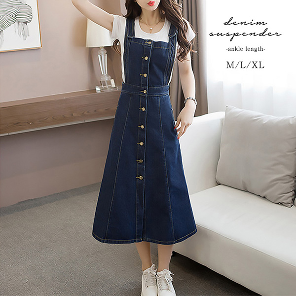 サロペットスカート レディーススカート デニムサロペット スカート 合わせやすい オールシーズン Aライン 美シルエット ミモレ丈 デニム カジュアル ワンピース オールインワン オーバーオール