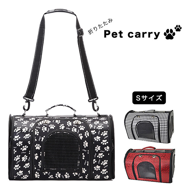 ペットキャリー 折りたたみペットキャリー Sサイズ お出かけ 散歩 病院 旅行 メッシュ素材 通気性抜群 ベルト付き キャリーケース 飛び出し防止リード付き 快適 安全 ふわふわマット 洗えるマット付き 2wayタイプ 手持ち 肩掛け