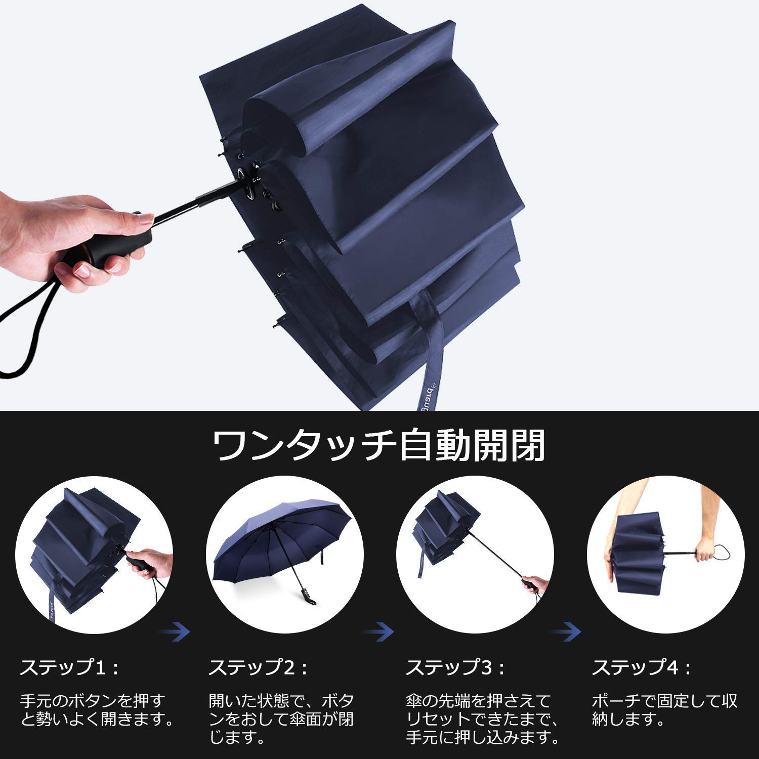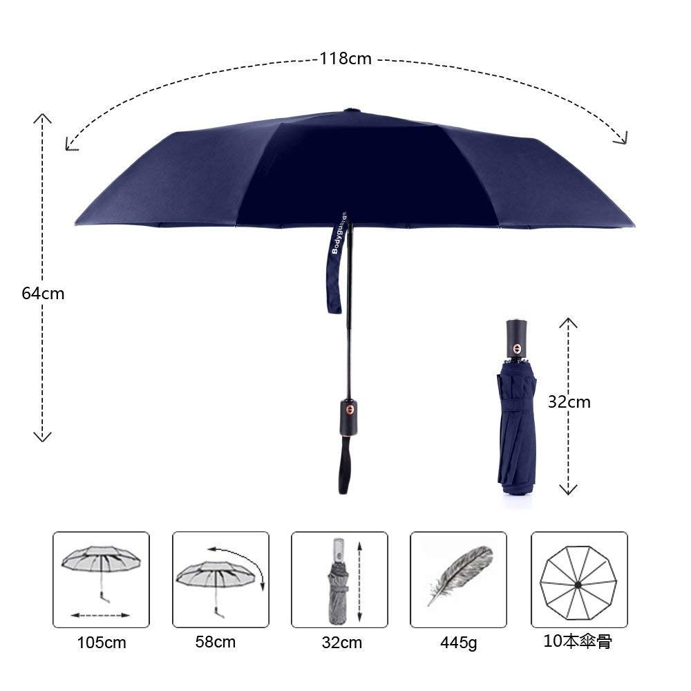Bodyguard 折りたたみ傘 Teflon加工 超撥水 210Tファブリック 頑丈な10本骨 高強度グラスファイバー 耐強風 ワンタッチ 自動開閉 晴雨兼用 傘 メンズ シンプル 118cm 収納ケース付き (ブルー)