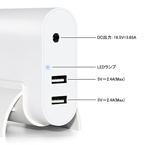 ・急速充電: AC入力は100~240V /50-60HZ、世界中に適用し,DC 出力はDC16.5V・3.65A、USBポートは5V・2.1Aで、合計60Wでフルスピード充電が可能になり、充電時間をを縮めます。