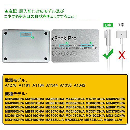 ・対応機器:主にアップルMacbookに適用してます。対応電源モデルはA1278/A1181/A1184/A1344/A1330/A1342。