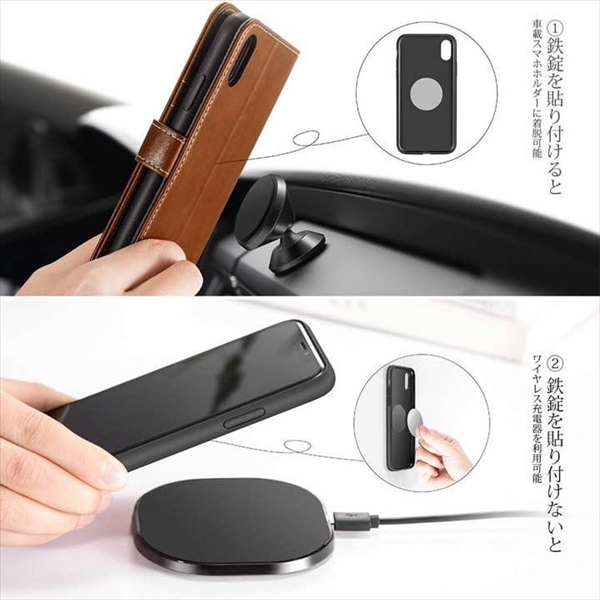 【2ムードを自由選択】丸い鉄錠を一つ付属し、内側のソフトケースにこの鉄錠を貼り付けると、マグネット式車載スマホホルダーに片手で簡単に着脱 可能です。この鉄錠を貼り付けないと、ワイヤレス充電器を利用可能です。お客様の好みに選択してください。