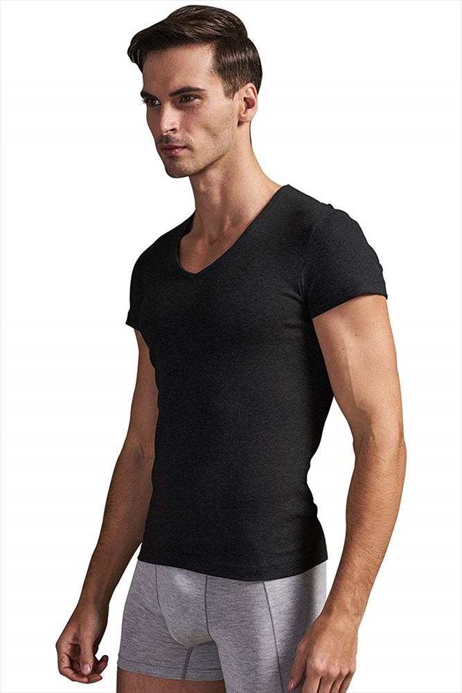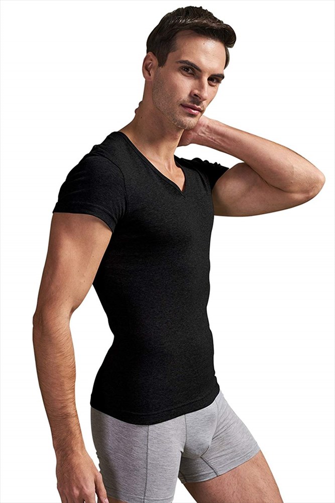 インナーシャツ やわらか肌着 綿100% 柔ら Vネック半袖 Tシャツ 2枚セット 黒 ブラック インナー 肌着 半袖 (日本サイズL)