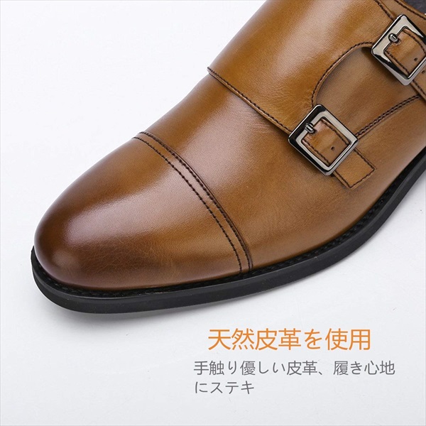 ビジネスシューズ メンズ 本革 紳士靴 革靴 モンクストラップ ストレートチップ 結婚式 ブラウン ビジネス靴 紳士用