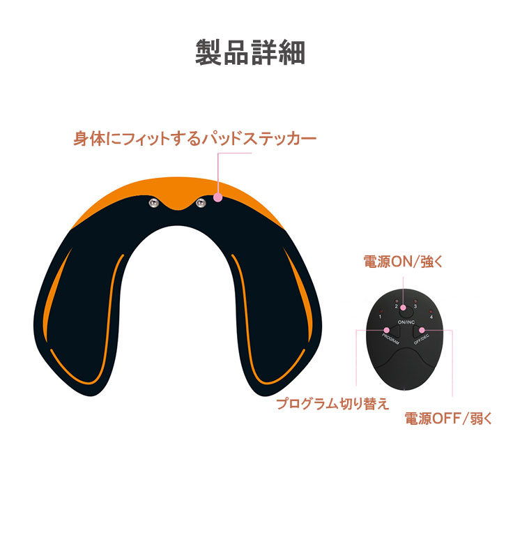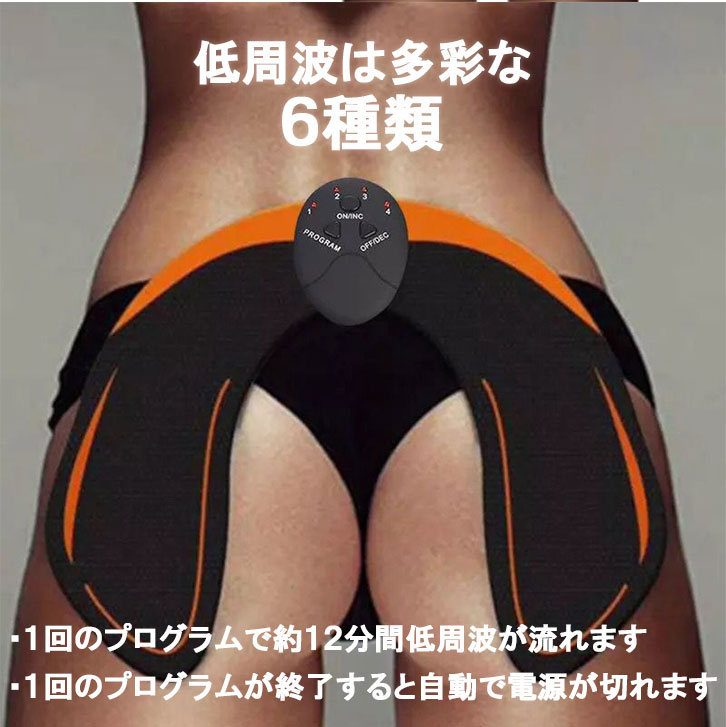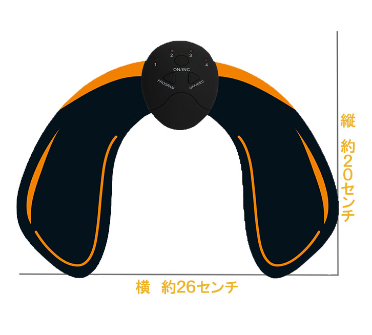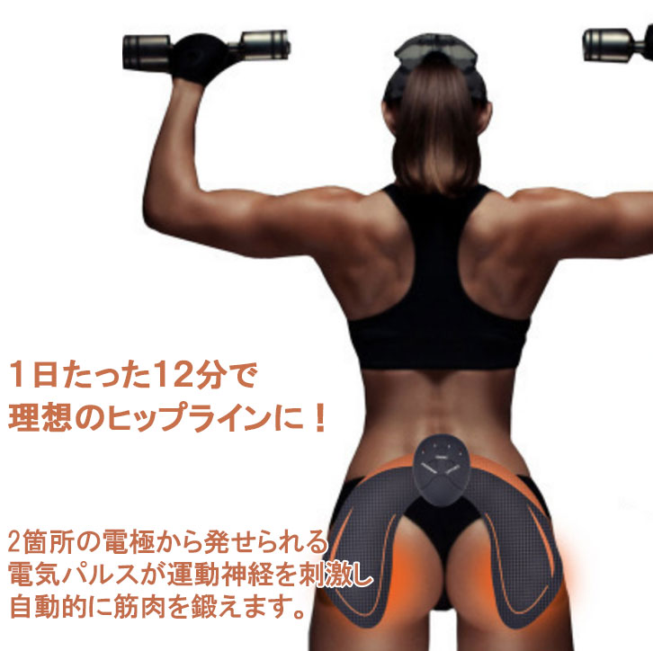 2箇所の電極から発せられるEMS(Muscle Stimulation Electrical) で大殿筋を刺激。