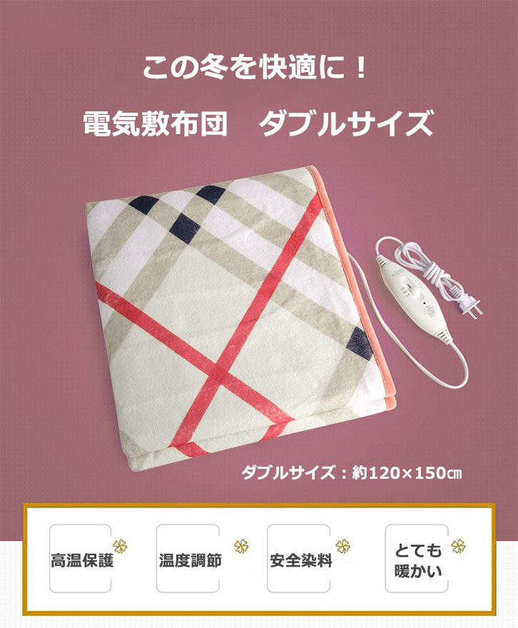 電気毛布 もうふ 電気敷毛布 電気 敷毛布 ダブル 120×150 チェック あったか 防寒 オシャレ お洒落 快適 省エネ 寒さ対策 ふわふわ ふんわり気持ちいい 発熱電気毛布 ダブルサイズ