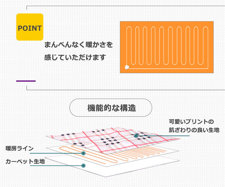 布団な中全体が暖かく、布団の下から伝わる冷えもシャットアウトし、寒さ知らずで全身心地よい