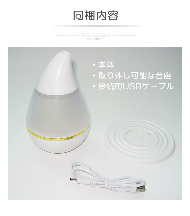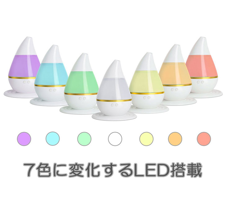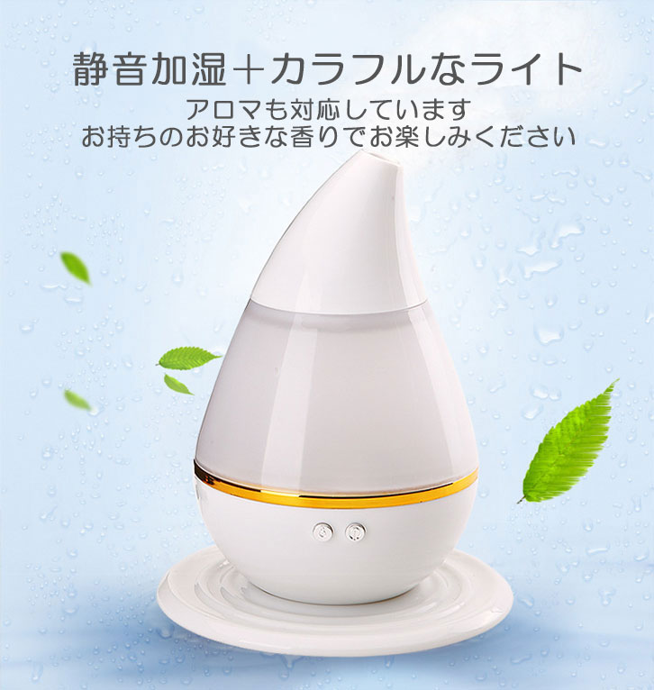 加湿器 USB接続 アロマ おしゃれ ライト しずく型加湿器 アロマディフューザー レイドロップ 超音波式アロマ加湿器 ドロップ 卓上 LED SC-201 乾燥対策 スチーム