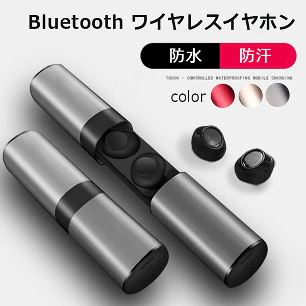 イヤホン Bluetoothイヤホン Bluetooth ワイヤレス ワイヤレスイヤホン ブルートゥース オシャレ 充電できる シンプル 3色展開 ゴールド グレー レッド かっこいい 高級感 持ち運び便利 両耳 片耳 左右分裂型 コンパクト