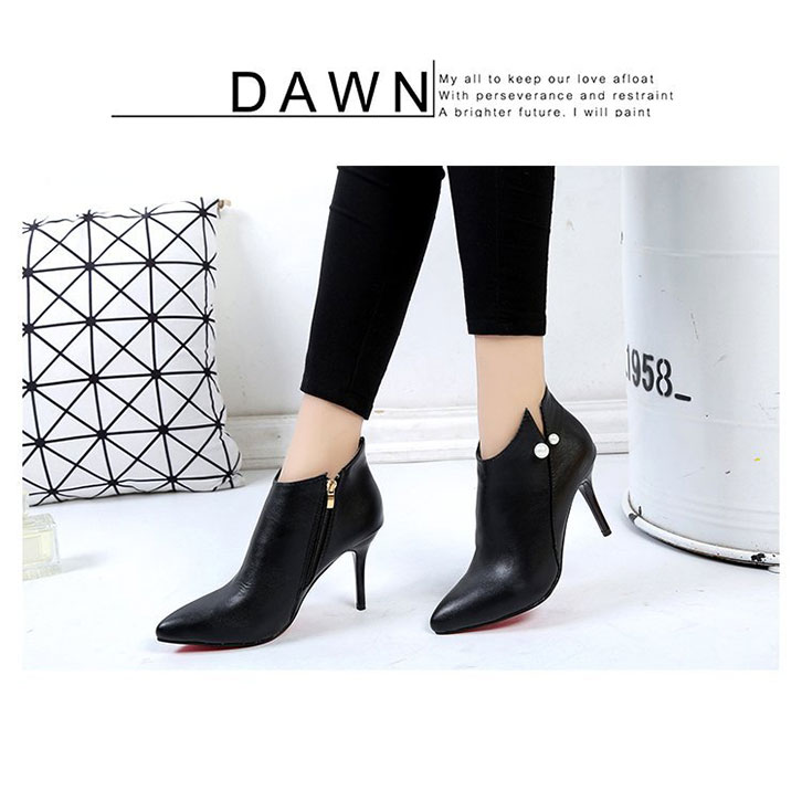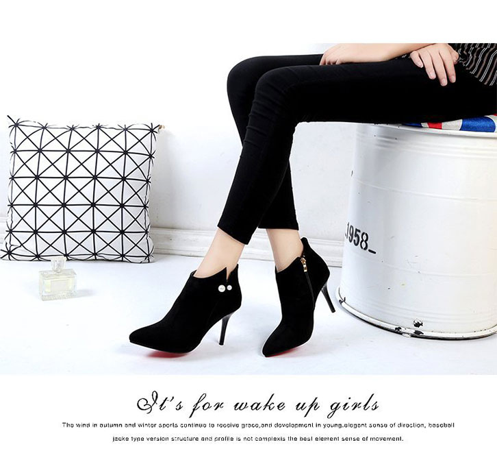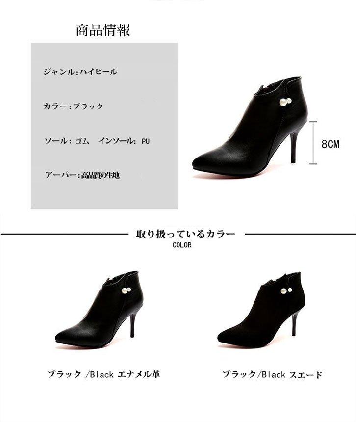 【カラータイプ】ブラックスエード/ブラックレザー 【サイズ】35(22.5センチ)/36(23センチ)/37(23.5センチ) 【ヒール】約8センチ パール付きのショートブーツになります♪ ショート丈なので足元をスッキリ見せてくれる 美シルエットブーティ♪ シンプルなデザインなので コーデを選ばずデイリーに活躍します♪