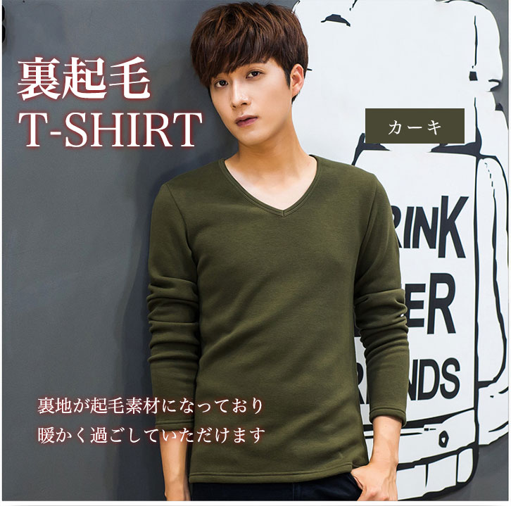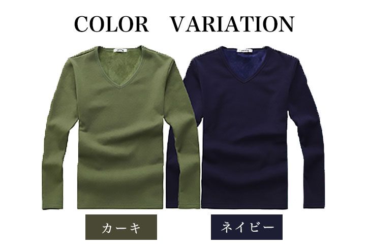 【カラー】カーキ/ネイビー 【サイズ】Mサイズ/Lサイズ 真冬の暖生活に革命! 裏起毛素材のメンズロンTになります♪ ファッションから仕事、リラックスタイムも この一着で防寒が変わります♪ デザインもVネックで無地かつシンプルなため 性別年齢も関係なくご使用頂ける万能ウェアです。