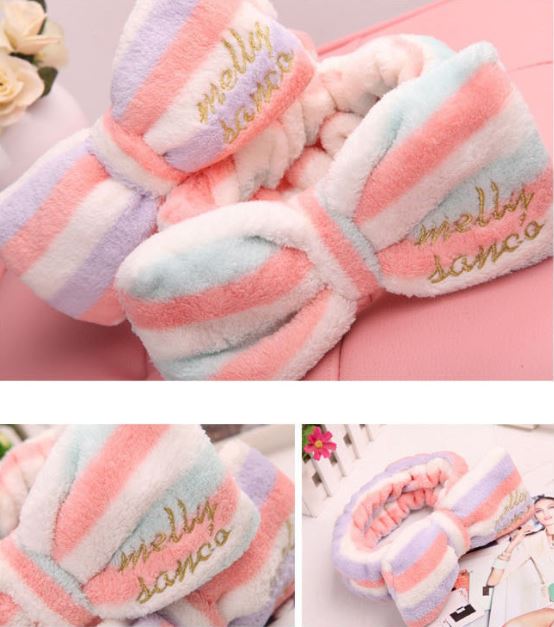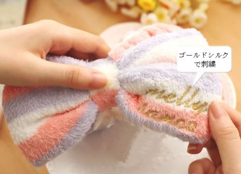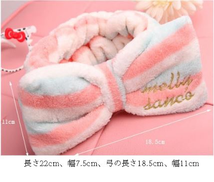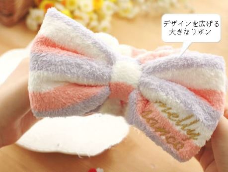 ヘアバンド 洗顔 メイク リボン ストライプ もこもこ BIGリボン ヘアターバン ふわふわ素材 入浴 メイク落とし 化粧 バスタイム バスウェア 小物 ヘッドバンド ヘアアクセサリー ヘアアクセ パステルカラー