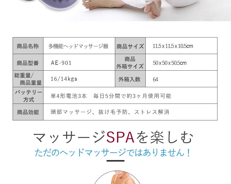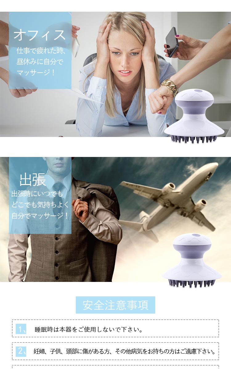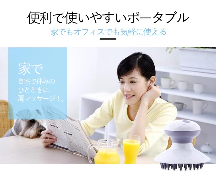 疲れを感じたときに振動機能を使ってリラックス効果♪ 頭皮への血流を増加させて、毛髪の成長と頭皮の健康を促進します。 これ一つで頭皮、頭、背中、肩、腕や手のマッサージが出来ます♪
