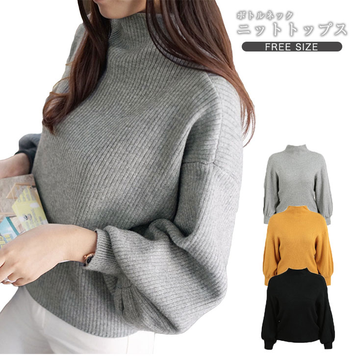 リブニット ニット ニットセーター ニット あったか 無地 ハイネック テレコ編み バルーン風袖 ボリューム ゆったり バルーンスリーブ シンプル 伸縮性 レディース 女性 ゆるふわ 可愛い お洒落 大人可愛い シンプル シンプルスタイル 定番 トレンド 人気 合わせやすい