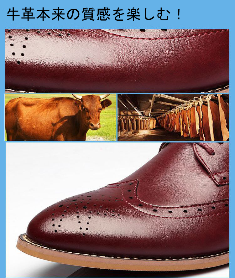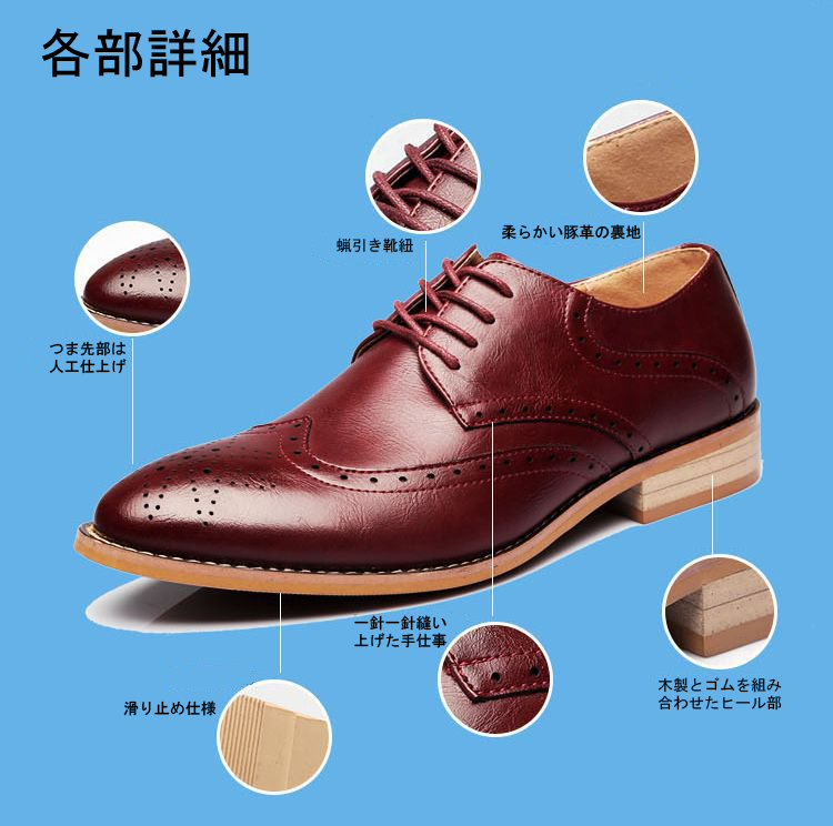 【カラー】ブラウン/ブラック/ワインレッド 【サイズ】43(26.5センチ) 【メイン素材】天然牛革 【ソール素材】ゴム 上品な表情ながらもカジュアルな着こなしにもハマるウィングチップシューズ♪ オシャレ靴の定番♪♪ シンプルでスタイリングを選ばず、 シーズンを問わず履き回せるエレガンスな1足です♪