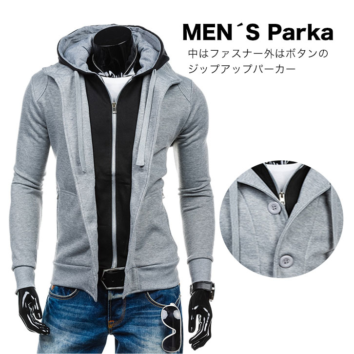 【カラー】ブラック/グレー 【サイズ】M/L これ1枚でも上にアウターを着てもOKな 使いやすいジップアップパーカー♪♪ シンプルなデザインなので カジュアルにもストリートにも合わせられる1枚です♪♪