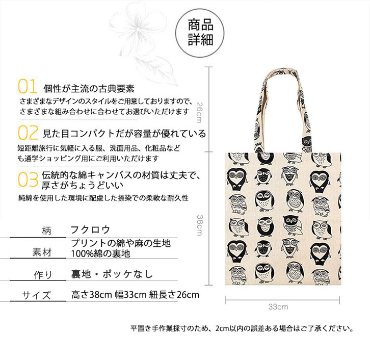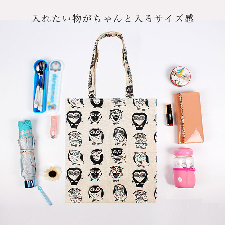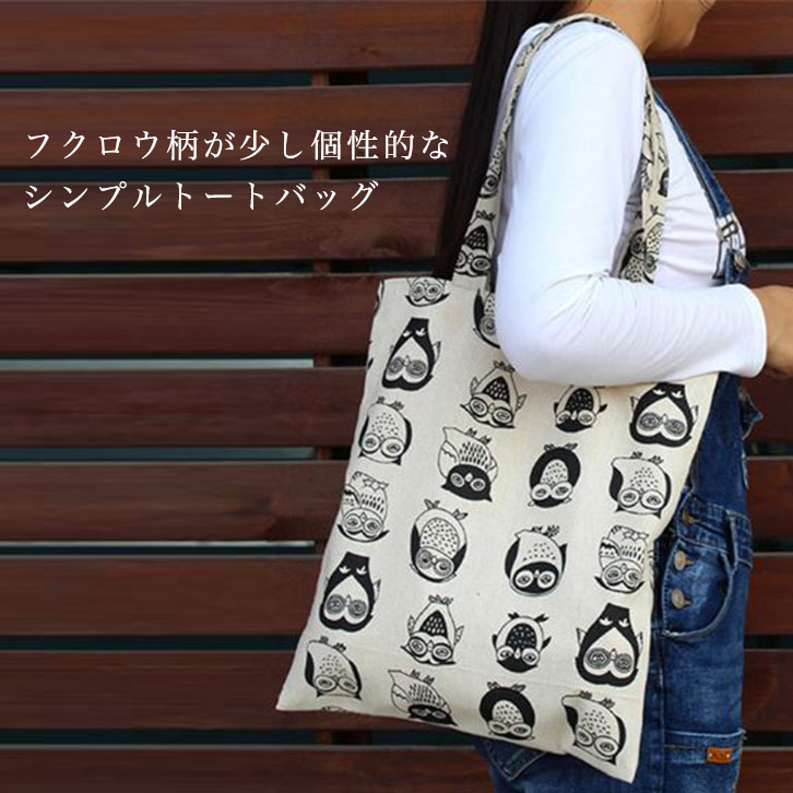 トートバッグ ハンドバッグ バッグ 肩掛けバッグ 肩掛け 幸運 綿 裏地なし フクロウ ふくろう レジバッグ かわいいバッグ 幸運アイテム