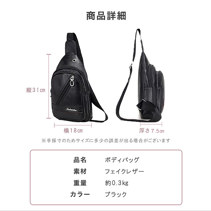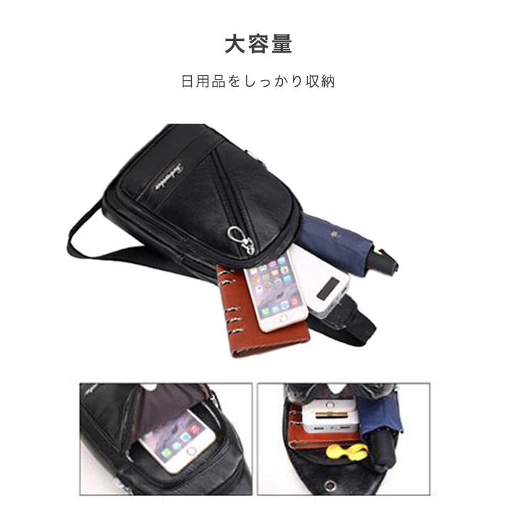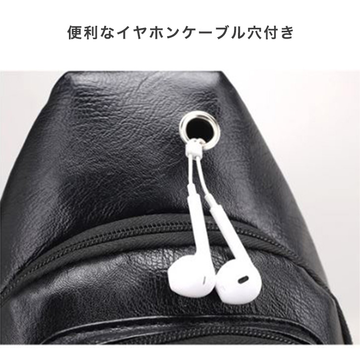 見た目以上の収納力の軽量ボディバッグ。 便利なUSBポート付です。 身体に密着させて背負うことができるため、