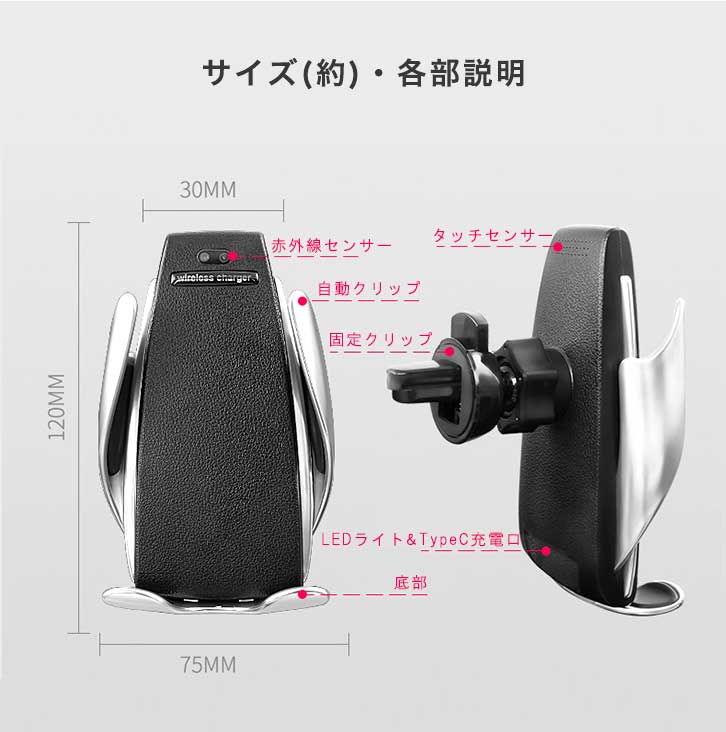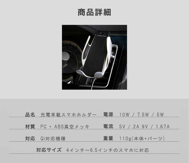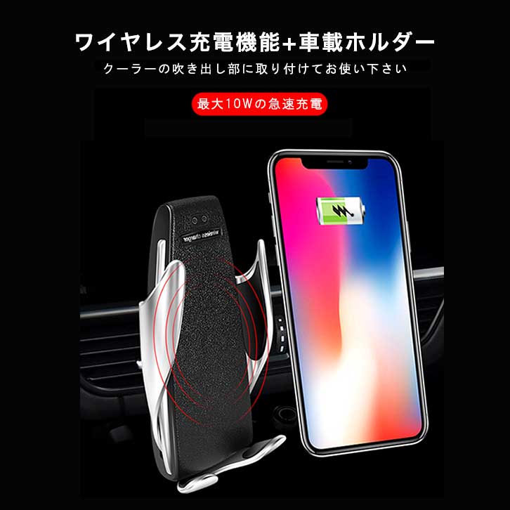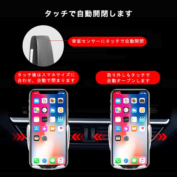 車載ホルダー Qi 車載 ワイヤレス充電器 電動オートホールド式 自動開閉 スマホスタンド スマホホルダー 最大10W急速充電 カーアクセサリー スマホアクセサリー 車用品 カー用品