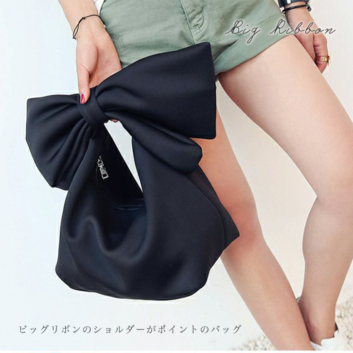 ビッグリボンハンドバッグ ハンドバッグ ビッグリボン リボンバッグ レディース 鞄 かばん バッグ りぼん 無地 リボンハンドル ボンディング素材 かわいい おしゃれ 個性派バッグ インパクト抜群