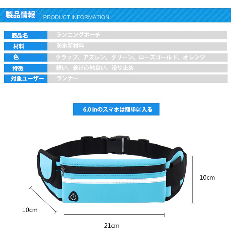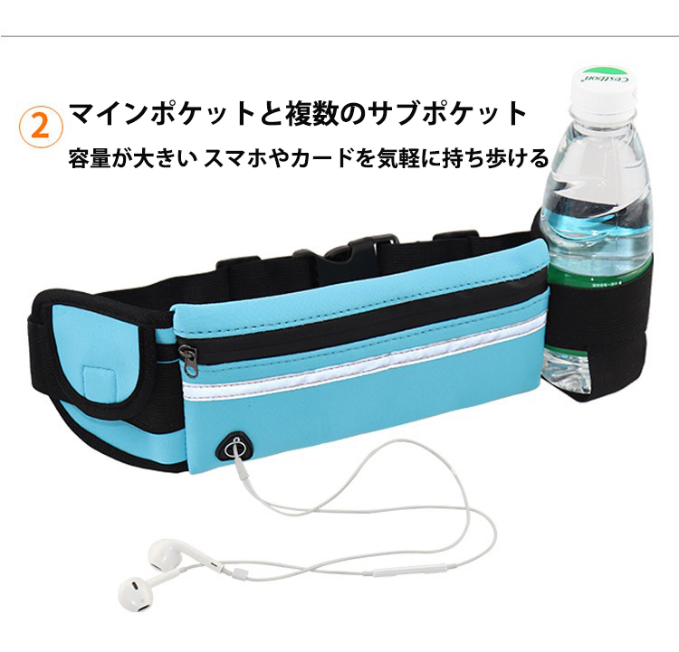 ランニングバッグ ペットボトルホルダー付き 防水 ウエストポーチ スポーツ用 ウェストバッグ ウォーキングバッグ ジョギングポーチ 登山 夜間ウォーキング サイクリング ランニング ジョギング 軽量