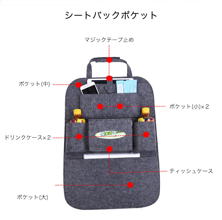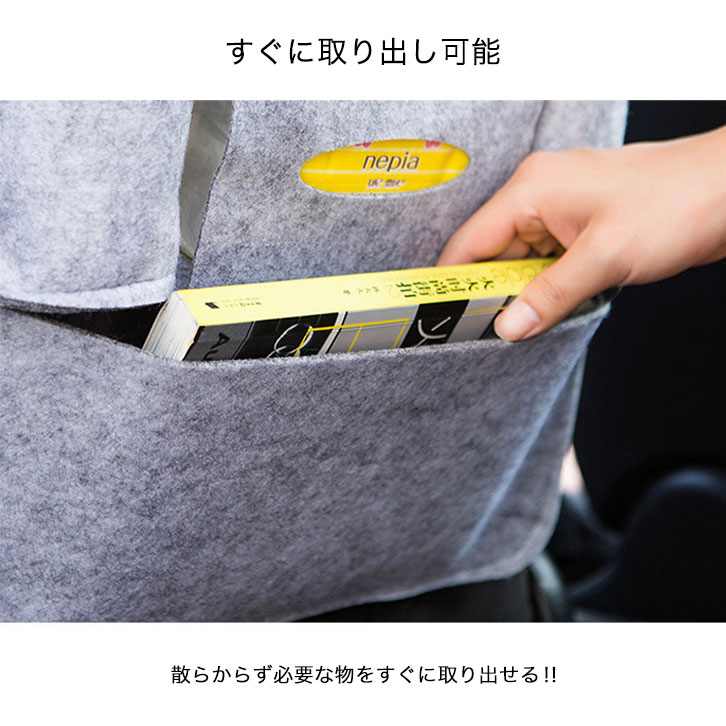 車のシートに取り付ければ、必要なものがサッと取り出せて便利!